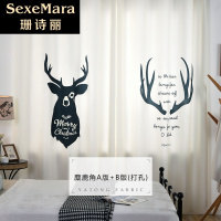 珊诗丽2018韩国北欧风黑白英文鹿角卡通成品窗帘简约客厅窗帘可订做