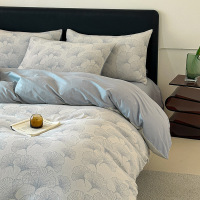 美帮汇四件套北欧风 欧式床上全棉被套贡缎全棉灰色简约大气床笠款