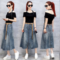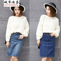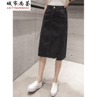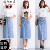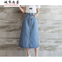 2文艺范单排扣高腰显瘦百搭A字裙中长牛仔半身裙系列款