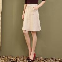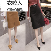 衣姣人(YIJIAOREN)女装2018秋冬厚毛呢纯色口袋中长款高腰a字裙包臀半身一步裙