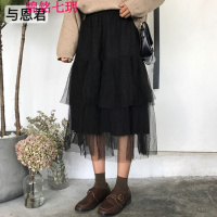 锦铭七玥与恩君[]2018春款气质层层网纱蓬蓬中长半身裙女半身纱裙