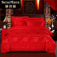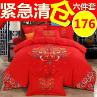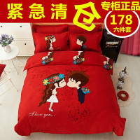 婚庆大红全棉四件套 结婚秋冬加厚2.0m被套床单1.8m双人床上用品