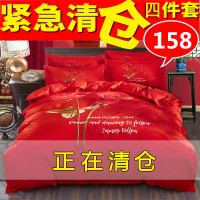结婚全棉四件套新婚大红色纯棉1.8m2.0m床双人加厚婚庆被套床单式