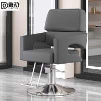 戴劲理发椅美发凳子发廊专用升降可放倒剪发椅 简约灰色上座-银色圆盘