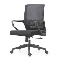 正斌办公椅子电脑椅舒适久坐家用办公室职员会议工位座椅靠背升降转椅[弓形脚]黑框 黑网(宽厚腰拖)