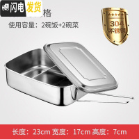 三维工匠304不锈钢饭盒长方形带盖学生儿童成人上班族食堂蒸饭便当盒餐盒 304特大号左右分隔(1800)