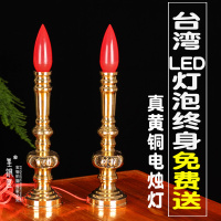 插电纯铜电烛台蜡烛财神灯供文武财神关公佛具佛堂长明灯led供灯
