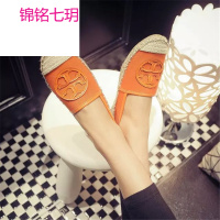 锦铭七玥2017新款草编麻绳帆布鞋绣花夫鞋女懒人平底孕妇乐福鞋