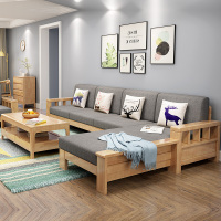 法派克 中式实木沙发组合客厅家具北欧原木转角沙发组合 现代简约沙发组合 双人+贵妃+单人