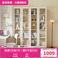 全友家居现代简约大容量书柜带玻璃门落地柜奶油风钢化玻璃书柜