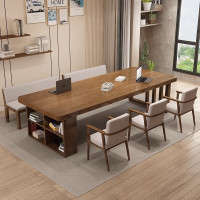 苏宁 质凡 实木大书桌会议桌书柜一体图书馆学习桌220*90*75cm板厚5cm(单桌)