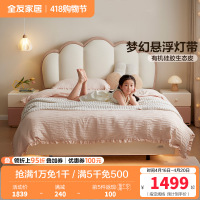 全友家居 皮艺床奶油风卧室女孩公主床青少年软包单人床