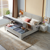 全友家居现代轻奢储物双人床 软靠包欧皮实木框架大床 置物收纳卧室家具高箱床