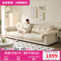 全友家居2024新款奶油风客厅小户型直排猫抓布艺帆船沙发