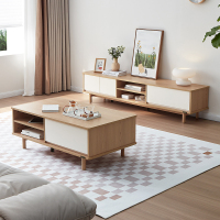 全友家居原木奶油风茶几电视柜客厅实木高脚茶几
