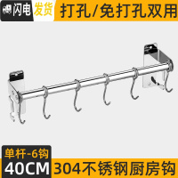 三维工匠免打孔304不锈钢厨房挂钩 厨房挂杆挂架挂钩架排钩壁挂置物架收纳 [304不锈钢]单杆40cm