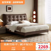 全友家居皮艺床复古极简头层牛皮软包床小户型卧室多功能双人大床