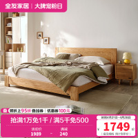 全友家居北欧简约双人床 北美进口橡木实木床1.5米/1.8米卧室大床婚床