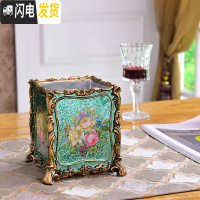 三维工匠欧式复古笔筒美式田园家居梳子化妆刷筒时尚摆件客厅遥控器收纳盒 绿色9074G金属系