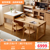 全友家居 全实木岛台餐桌一体可伸缩家用餐厅小户型饭桌椅组合
