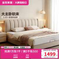 全友家居 现代简约布艺床 仿棉麻面料软包床屏 可拆洗软床 实木内架双人床 卧室婚床