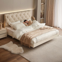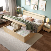 全友家居时尚北欧卧室家具 高箱储物床板式卧室双人床简约现代板式床人造板 床头柜高箱