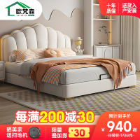 欧梵森 儿童床轻奢双人床现代简约卧室皮床1.8米小户型白色软包床男孩女孩储物床皮艺床
