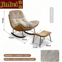 锦北单人摇摇椅懒人沙发可躺可睡摇椅客厅阳台躺椅[米白色]棕色底座