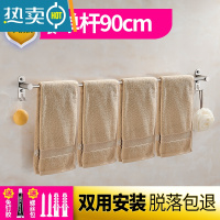 敬平毛巾杆免打孔304不锈钢挂毛巾架子单杆加长卫生间浴室洗手间挂杆 304不锈钢90cm单杆带钩浴室置物架