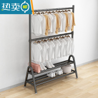 敬平双层晾衣架落地折叠卧室内宿舍出租房挂衣杆上下两多层衣帽收纳架 黑三层双板长120高可调180到260