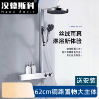 送安装汉德斯科淋浴花洒套装恒温沐浴器贴墙安装带腰喷圆形高端全铜瀑布空气增压钢琴按键家用浴室淋雨喷头调温大置物HBGT10