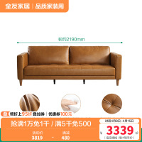 全友家居复古中古风美式中小户型皮艺沙发进口头层牛皮直排皮沙发