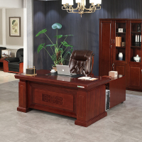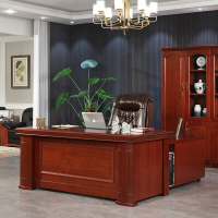 全简老板桌主管办公桌油漆总裁经理桌实木贴皮大班台含侧柜小吊柜