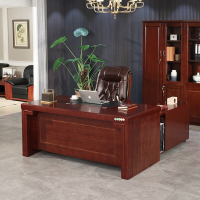 全简老板桌油漆办公桌总裁主管桌实木贴皮经理桌大班台含侧柜小吊柜