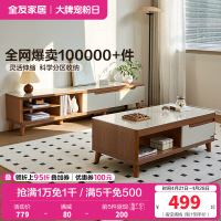 全友家居茶几电视柜组合简约现代客厅石材/岩板台面实木架可伸缩成套家具