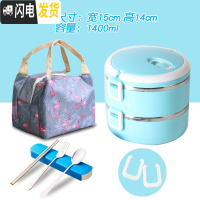 三维工匠双层保温饭盒2层1人学生不锈钢分格日式便当盒便携简约上班族女 二层蓝色+火烈鸟+餐具