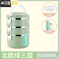 三维工匠双层保温饭盒不锈钢超长桶成人便当餐盒携2三层1人学生上班族多层 北欧绿3层级款送餐具
