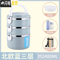 三维工匠双层保温饭盒不锈钢超长桶成人便当餐盒携2三层1人学生上班族多层 北欧蓝3层级款送餐具