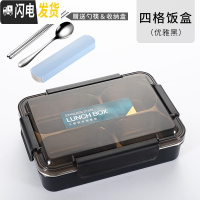 三维工匠饭盒304不锈钢保温便当上班族成人学生带盖食堂分格防漏餐盒简约 加大1.4黑色+4格+送餐具