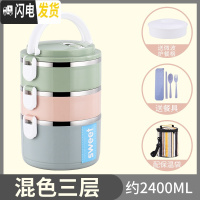 三维工匠双层保温饭盒不锈钢超长桶成人便当餐盒携2三层1人学生上班族多层 级款混搭(3层送餐具+配袋子)
