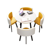 中豫鑫泽ZYXZ4100939 简约接待桌椅洽谈桌椅 一桌四椅 白色圆桌黄白皮椅