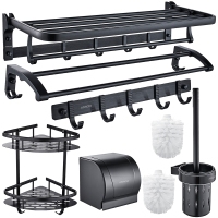 箭牌卫浴(ARROW)毛巾架 太空铝双层浴巾架 免打孔卫生间置物架 卫浴五金挂件套装 黑色挂件毛巾架三角篮挂衣钩浴室刷头