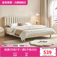 全友家居奶油风布艺软包双人床小户型主卧室实木高脚床