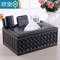 敬平抽纸盒桌面收纳盒家用皮多功能纸巾盒客厅创意纸抽盒遥控器茶几 平四黑色钻石纹