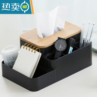敬平纸巾盒抽纸客厅创意茶几盒一体遥控器收纳盒多功能创意纸盒纸抽 黑色多功能纸巾盒