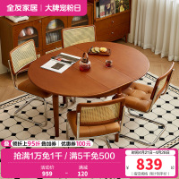 全友家居餐桌法式复古多功能圆桌客厅餐厅可伸缩实木桌腿吃饭桌子