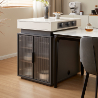 全友家居岛台功能餐桌椅组合一体钢化玻璃桌面轻奢家用客厅饭桌