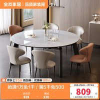 全友家居餐桌法式复古多功能圆桌客厅餐厅可伸缩实木桌腿吃饭桌子