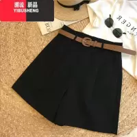 YIBUSHENG通勤百搭~卡其色西装休闲短裤女高腰a字阔腿裤宽松直筒短裤