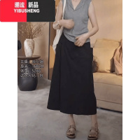 YIBUSHENG黑色西装短裤女季薄款2024宽松高腰a字休闲中裤半裤阔腿五分裤
